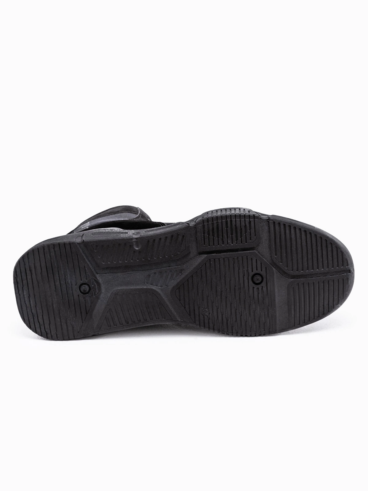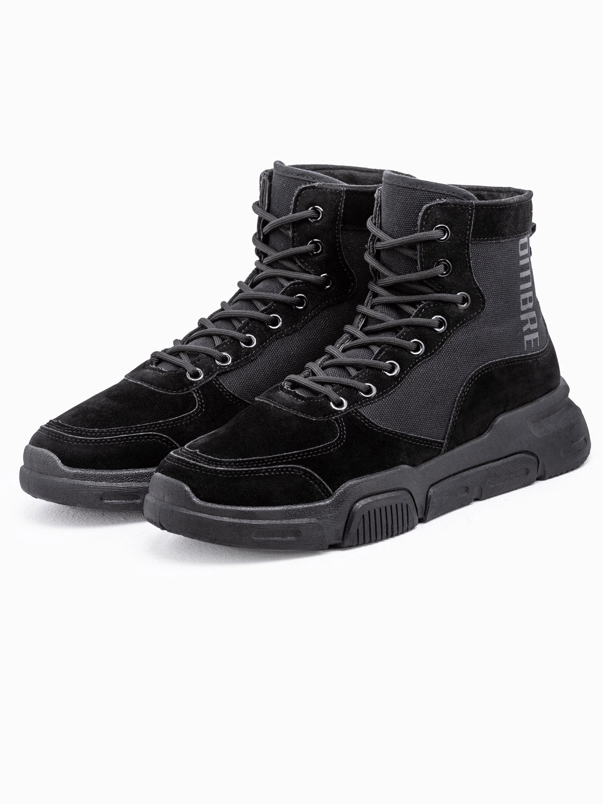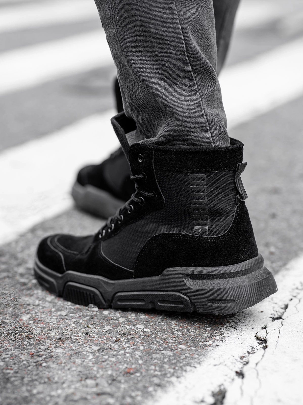 Niebanalny design tych wysokich butów nie pozostawi nikogo obojętnym. Z pewnością spodobają się mężczyznom stawiającym w modzie na indywidualizm i oryginalność. Ciekawe połączenie materiałów oraz przykuwające oko detale odpowiadają za ich intrygujące walory wizualne. Solidna gruba podeszwa ze stylowymi rzeźbionymi wzorami doskonale łączy funkcjonalność ze stylem. Przyjemna w dotyku wyściółka oraz miękka wkładka zapewnia stabilny krok i wygodę noszenia.