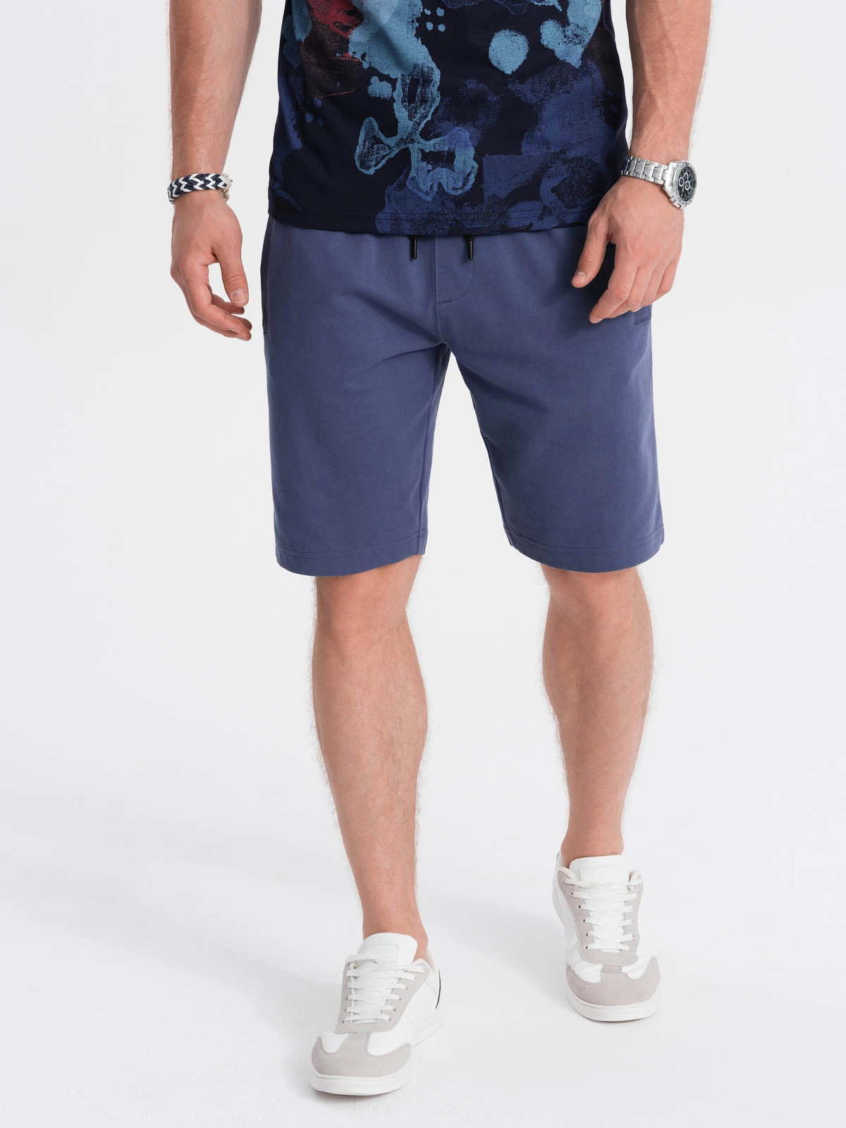 Męskie spodenki dresowe o klasycznym kroju. Doskonale sprawdzą się w luźniejszych stylizacjach. Spodenki ściągane w pasie za pomocą kontrastowego sznurka. Wykonane w 100% z bawełnianej dzianiny o wykończeniu french terry! Zapewniają komfort użytkowania.