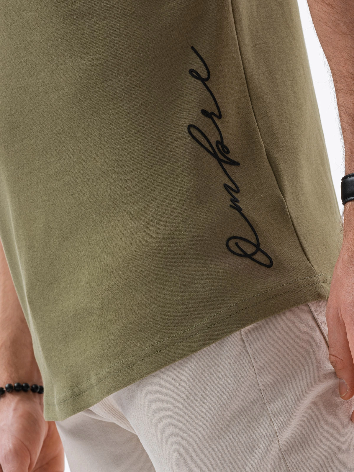 Koszulka o lekko dopasowanym kroju, świetnie układa się na sylwetce. Koszulka ma wydłużony tył, dzięki czemu zyskuje bardziej nowoczesny, modowy look. Ozdobny nadruk z boku. Koszulka świetnie wygląda z jeansami oraz szortami.