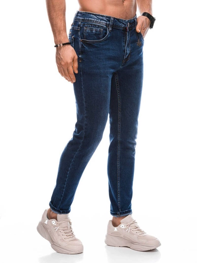 Spodnie męskie jeansowe slim fit z przeszyciem na kolanach - niebieskie V1 OM-PADP-0109