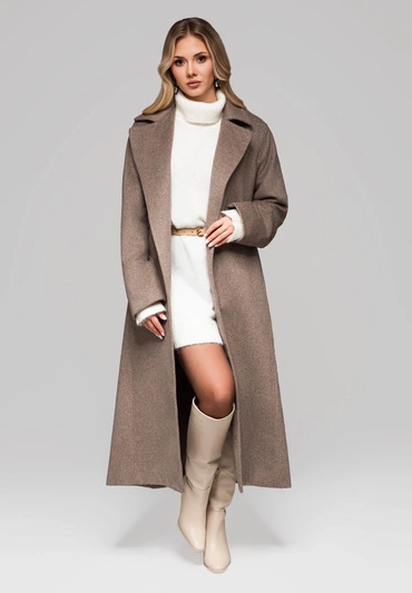 Płaszcz damski wełniany długi LARICA OW-COLC-0100 v2 - brązowy