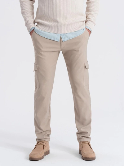 Spodnie męskie materiałowe REGULAR z kieszeniami cargo - ciemnooliwkowe V1 OM-PACG-0178