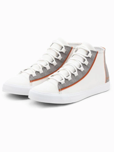 Buty męskie trampki z kontrastującymi elementami - białe V1 OM-FOTH-0125