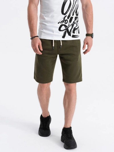 Krótkie spodenki męskie z kieszeniami - ciemnooliwkowe V16 OM-SRBS-0109