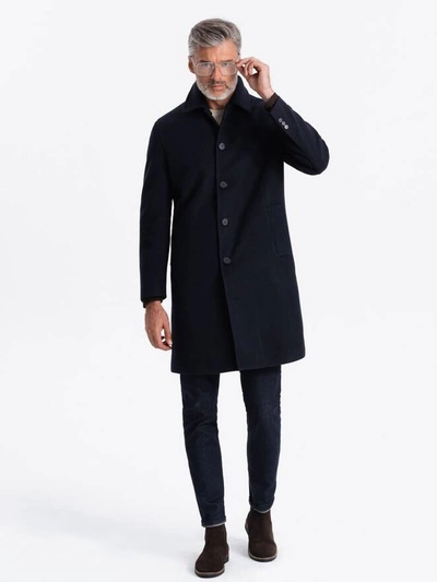 Kurtka męska bomberka o satynowym wykończeniu z kontrastowymi ściągaczami - ciemnoniebieska V2 OM-JALP-22FW-007