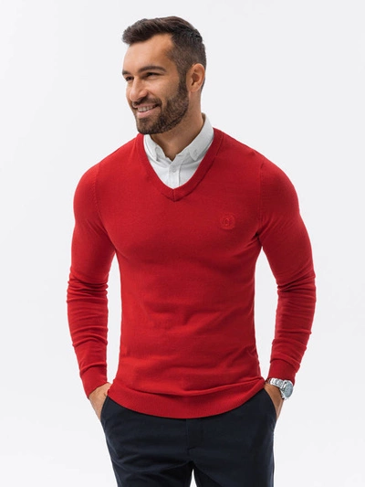 Sweter męski z białym kołnierzykiem - czerwony V4 E120