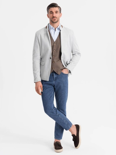 Jednokolorowe wysokie buty męskie z ozdobnymi przeszyciami – camel V3 OM-FOBO-0133